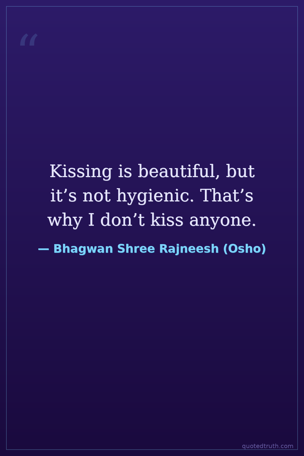 Kissing is beautiful, but it’s not hygienic. That’s why I don’t kiss anyone.