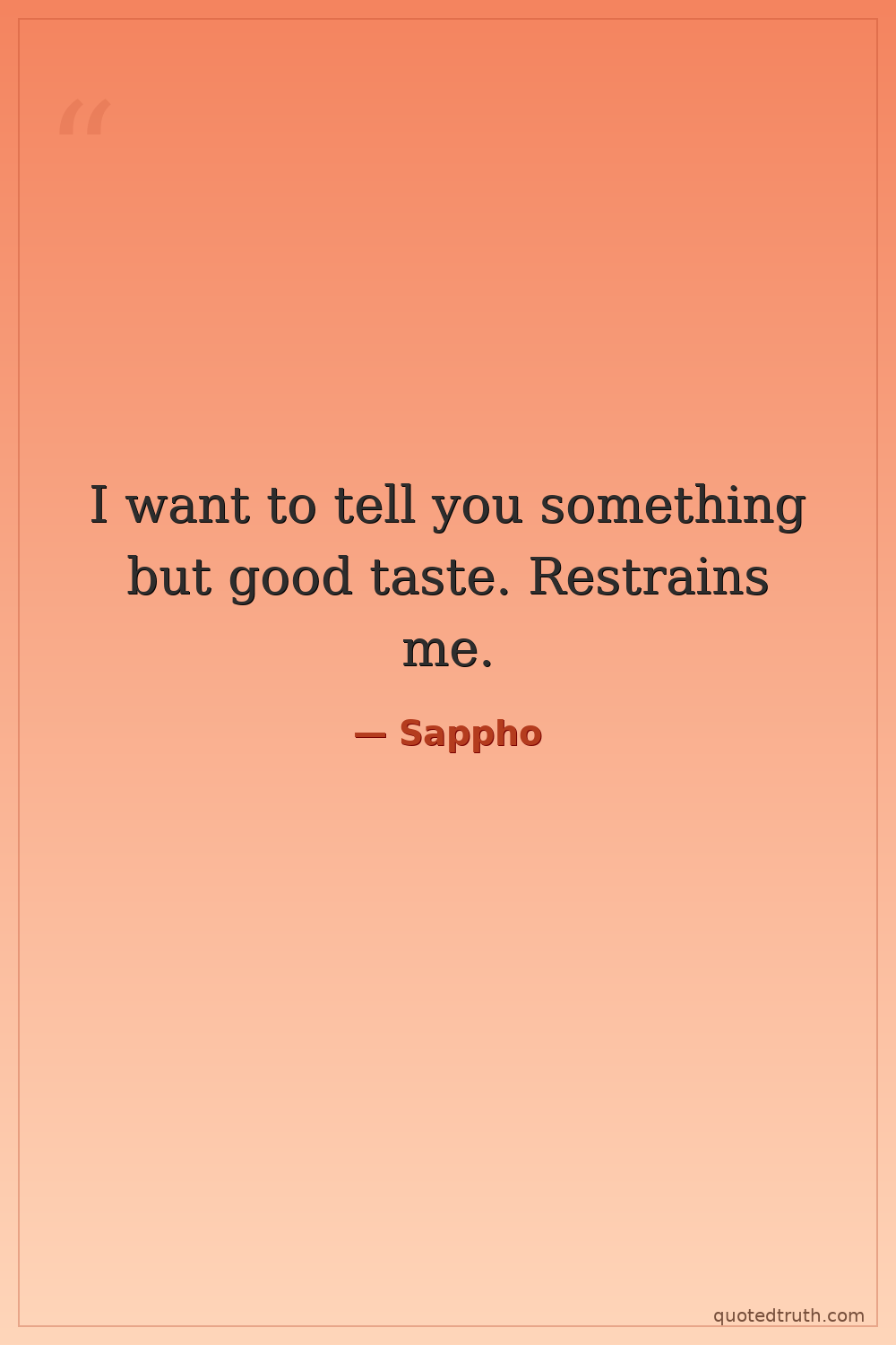 I want to tell you something but good taste. Restrains me.