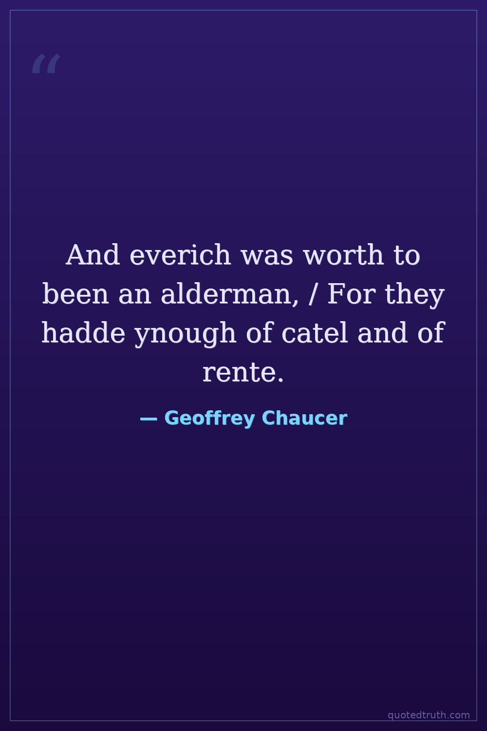 And everich was worth to been an alderman, / For they hadde ynough of catel and of rente.