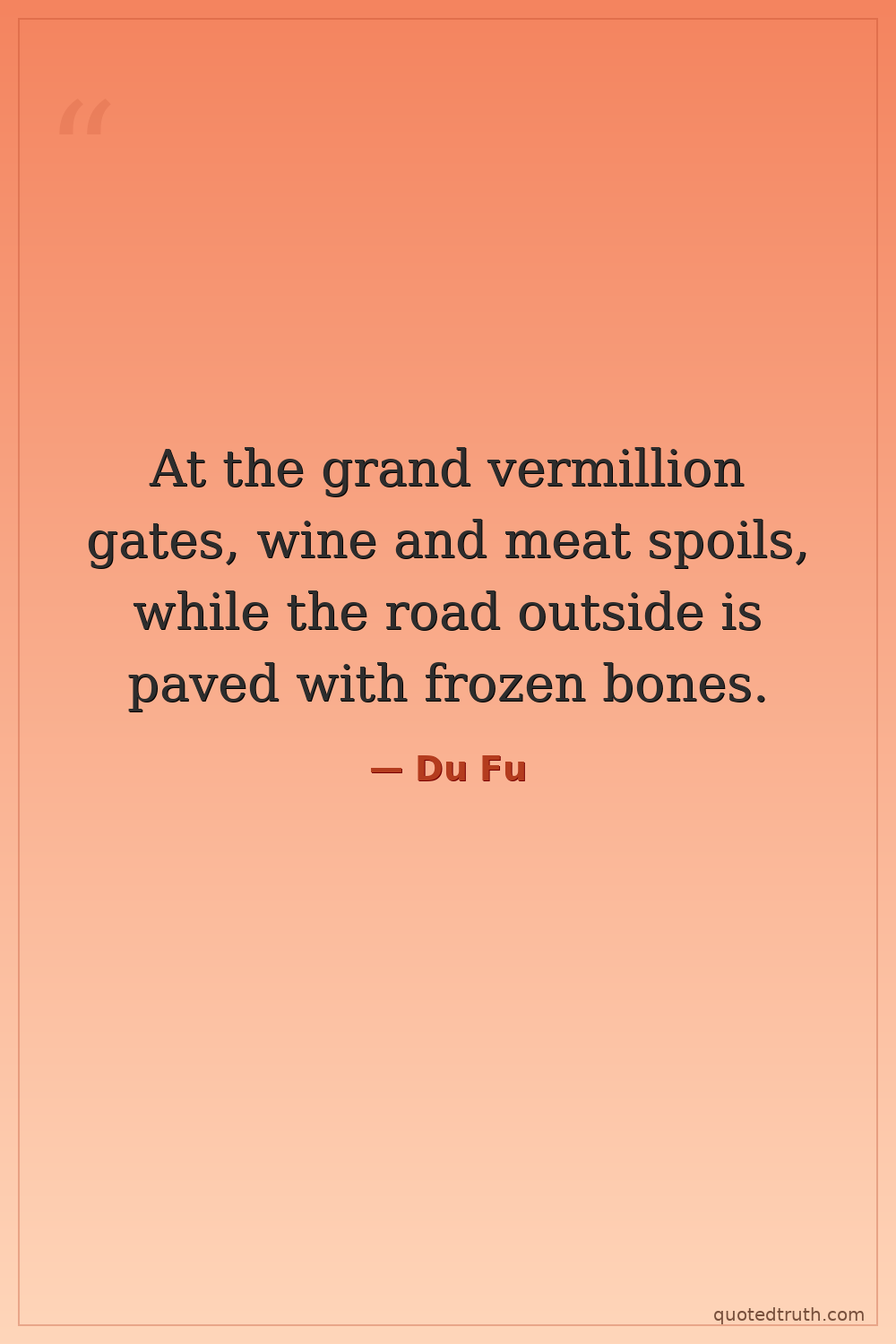 At the grand vermillion gates, wine and meat spoils, while the road outside is paved with frozen bones.