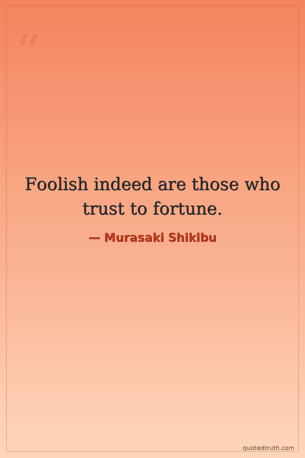 Foolish indeed are those who trust to fortune.