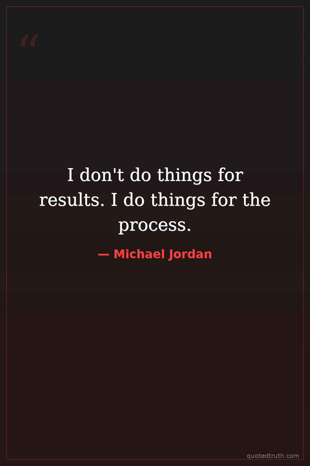 I don't do things for results. I do things for the process.