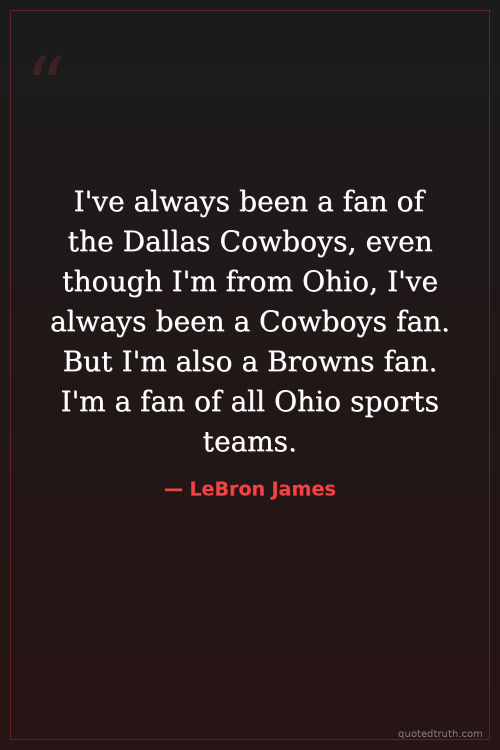 I've always been a fan of the Dallas Cowboys, even though I'm from Ohio, I've always been a Cowboys fan. But I'm also a Browns fan. I'm a fan of all Ohio sports teams.