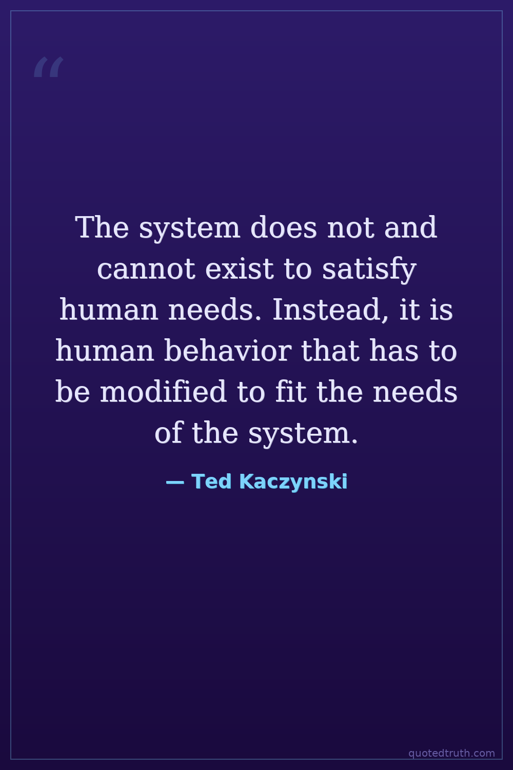 The system does not and cannot exist to satisfy human needs. Instead, it is human behavior that has to be modified to fit the needs of the system.