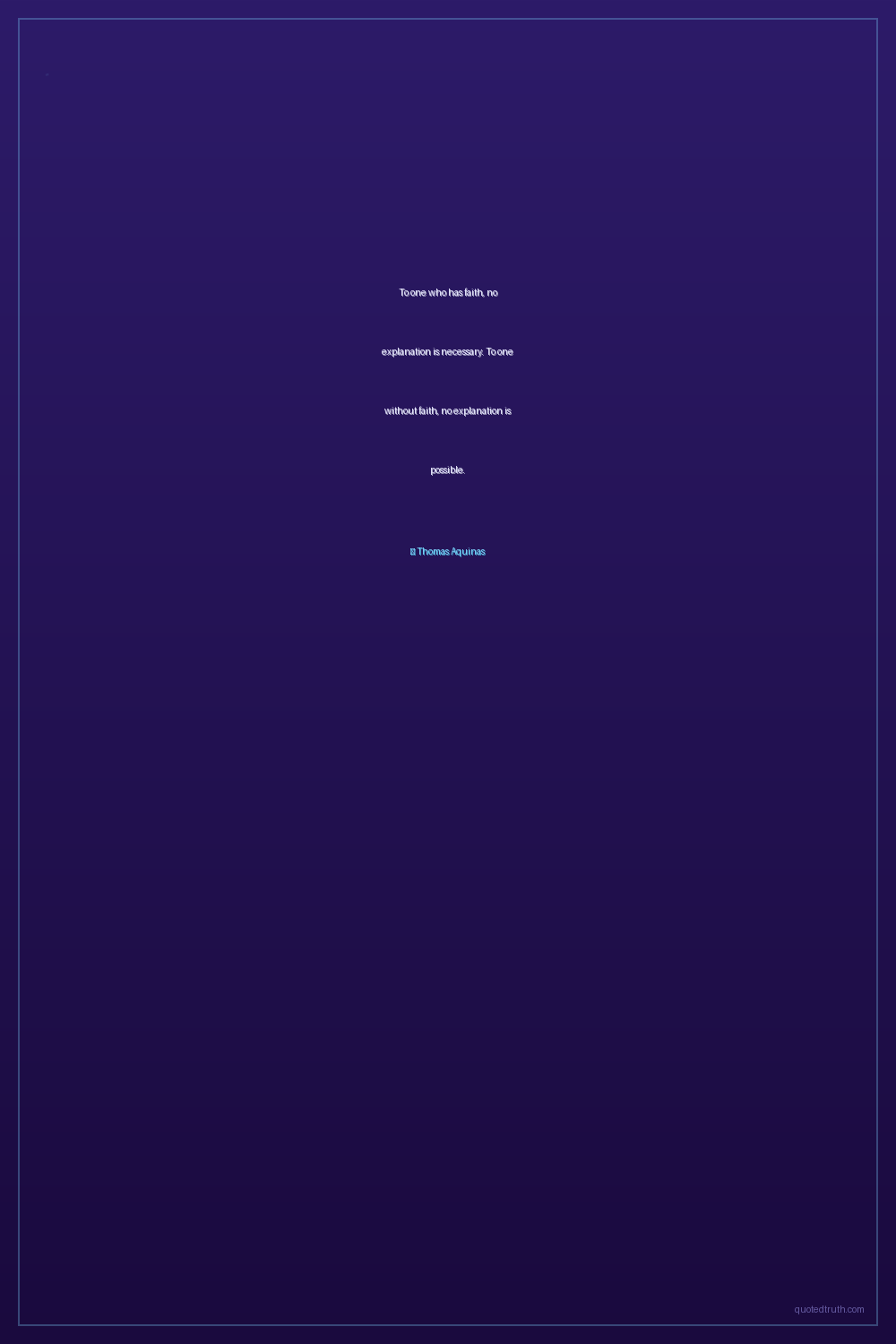 To one who has faith, no explanation is necessary. To one without faith, no explanation is possible.