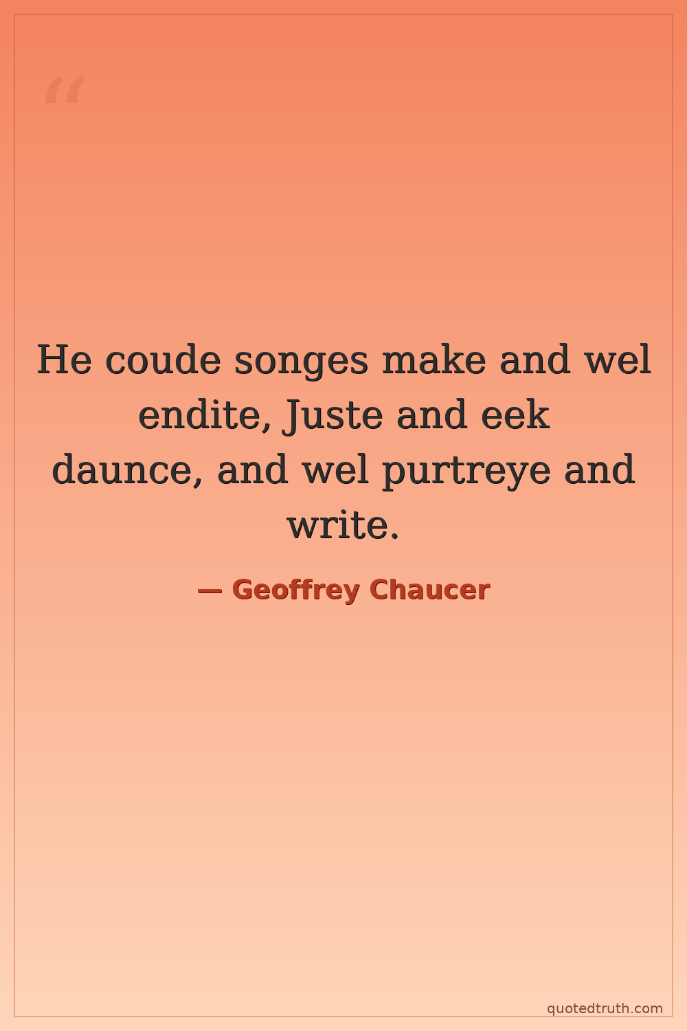 He coude songes make and wel endite, Juste and eek daunce, and wel purtreye and write.