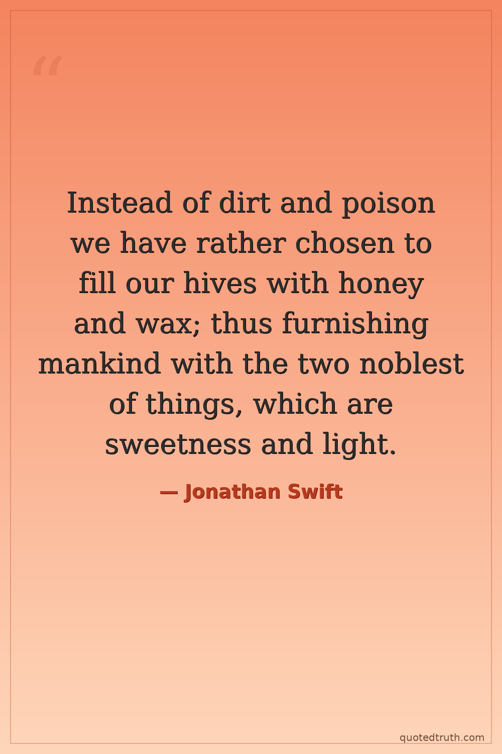 Instead of dirt and poison we have rather chosen to fill our hives with honey and wax; thus furnishing mankind with the two noblest of things, which are sweetness and light.