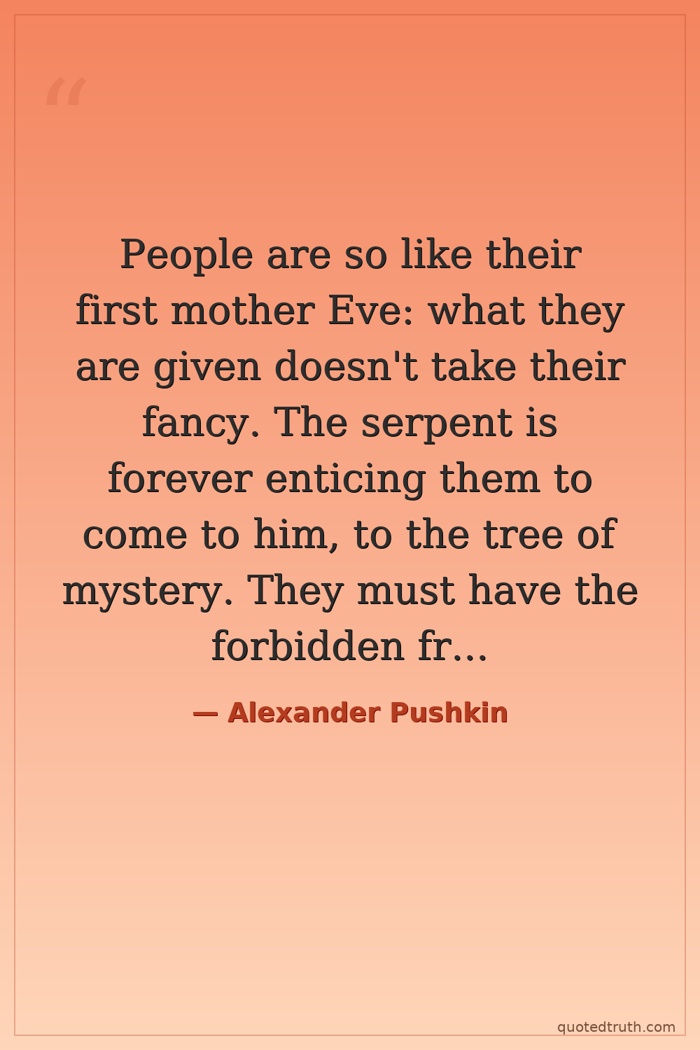 People are so like their first mother Eve: what they are given doesn't take their fancy. The serpent is forever enticing them to come to him, to the tree of mystery. They must have the forbidden fruit, or paradise will not be paradise for them.