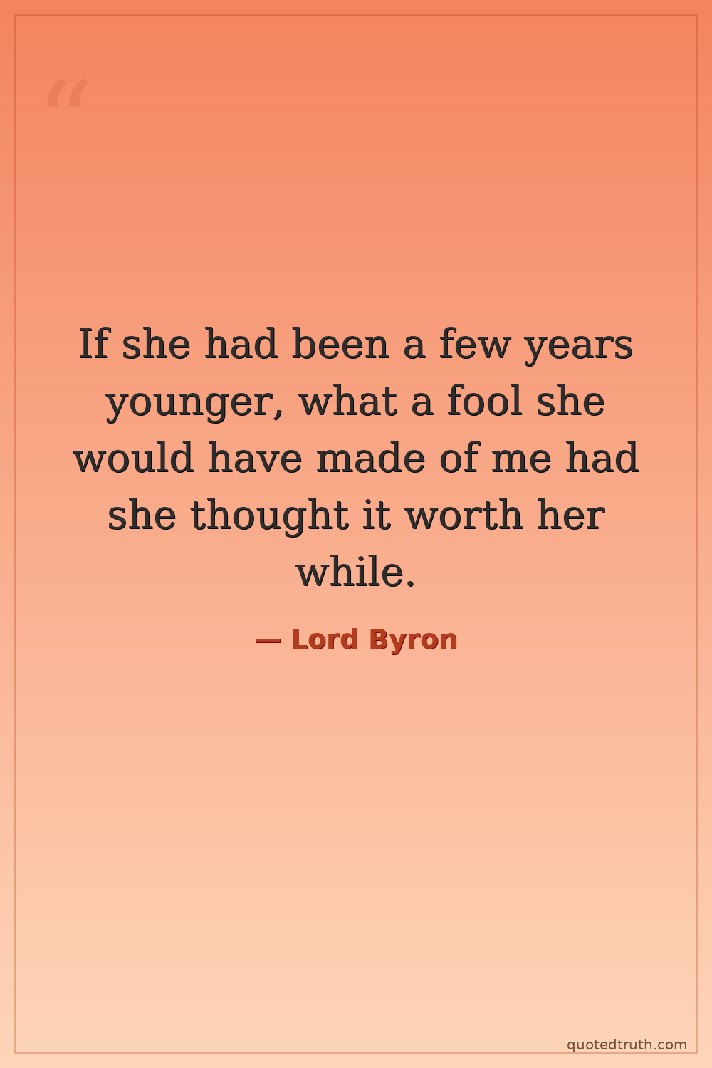 If she had been a few years younger, what a fool she would have made of me had she thought it worth her while.
