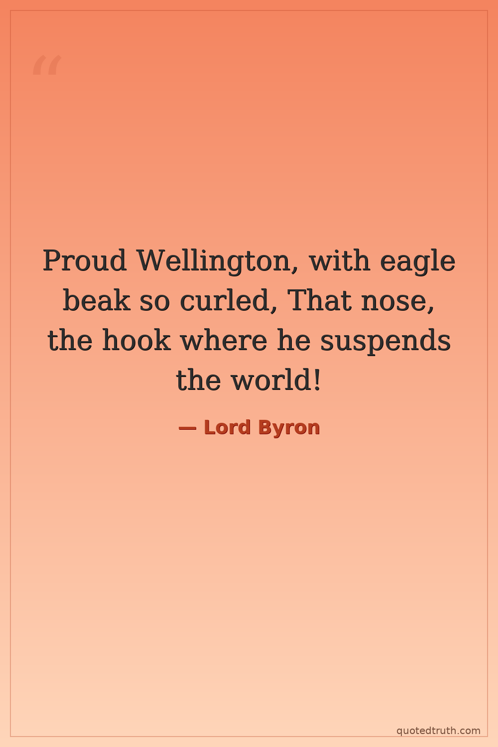 Proud Wellington, with eagle beak so curled, That nose, the hook where he suspends the world!