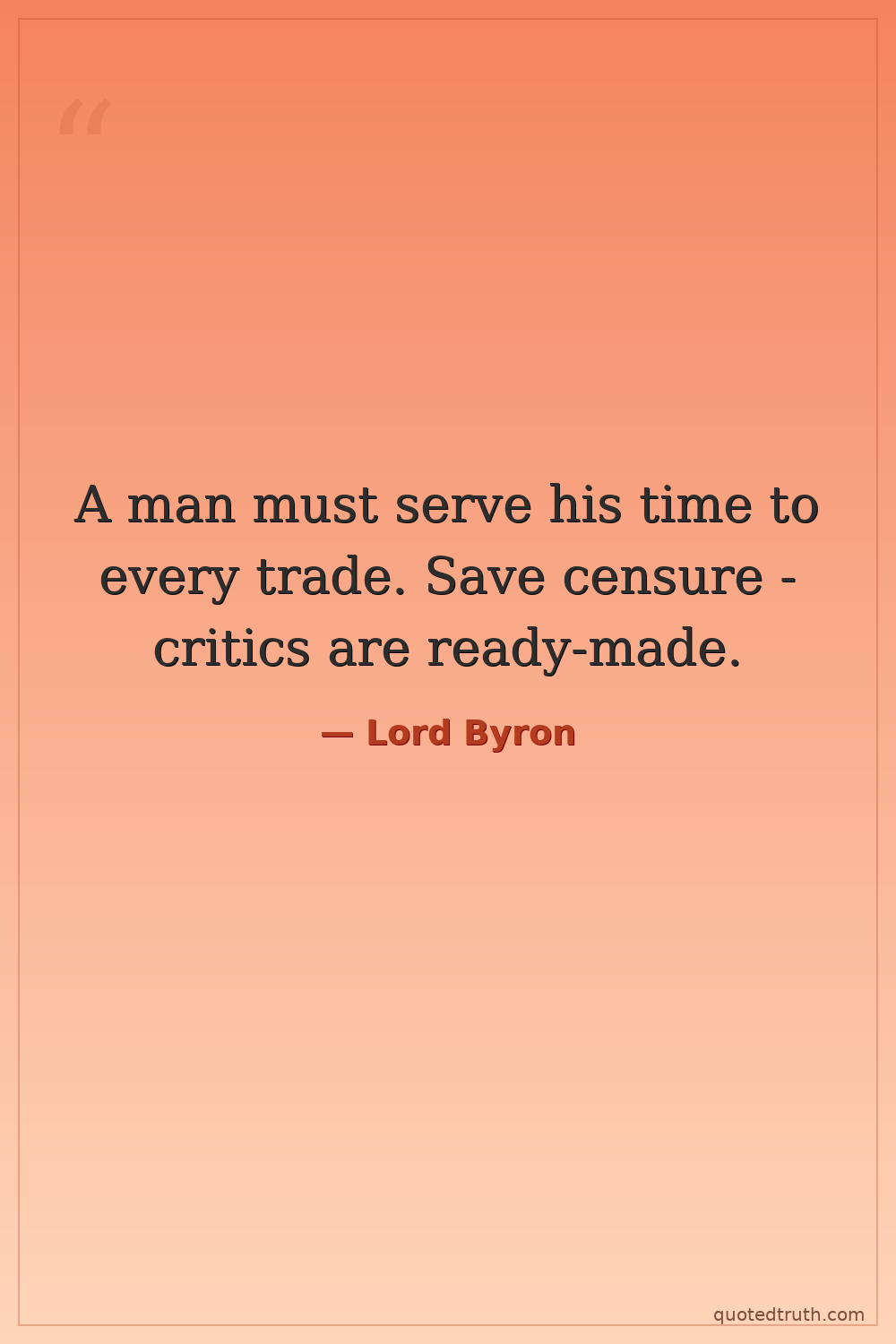A man must serve his time to every trade. Save censure - critics are ready-made.