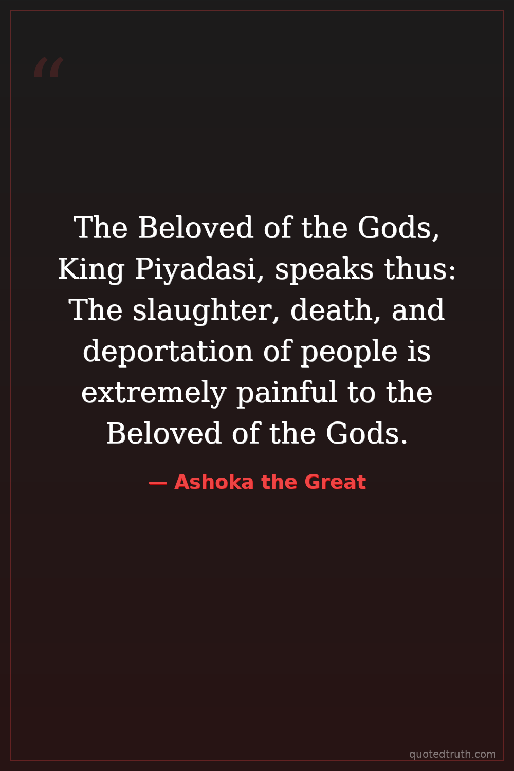 The Beloved of the Gods, King Piyadasi, speaks thus: The slaughter, death, and deportation of people is extremely painful to the Beloved of the Gods.