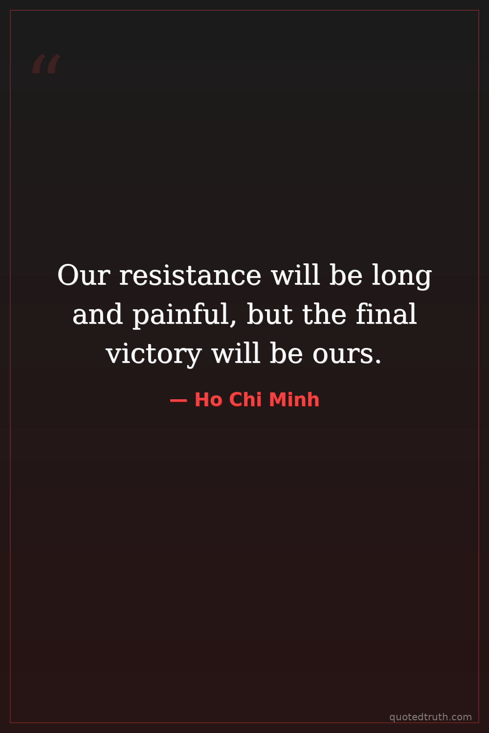 Our resistance will be long and painful, but the final victory will be ours.