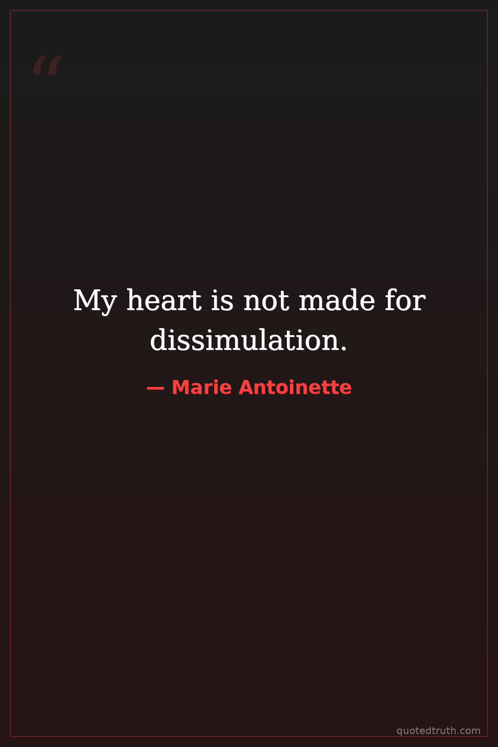 My heart is not made for dissimulation.