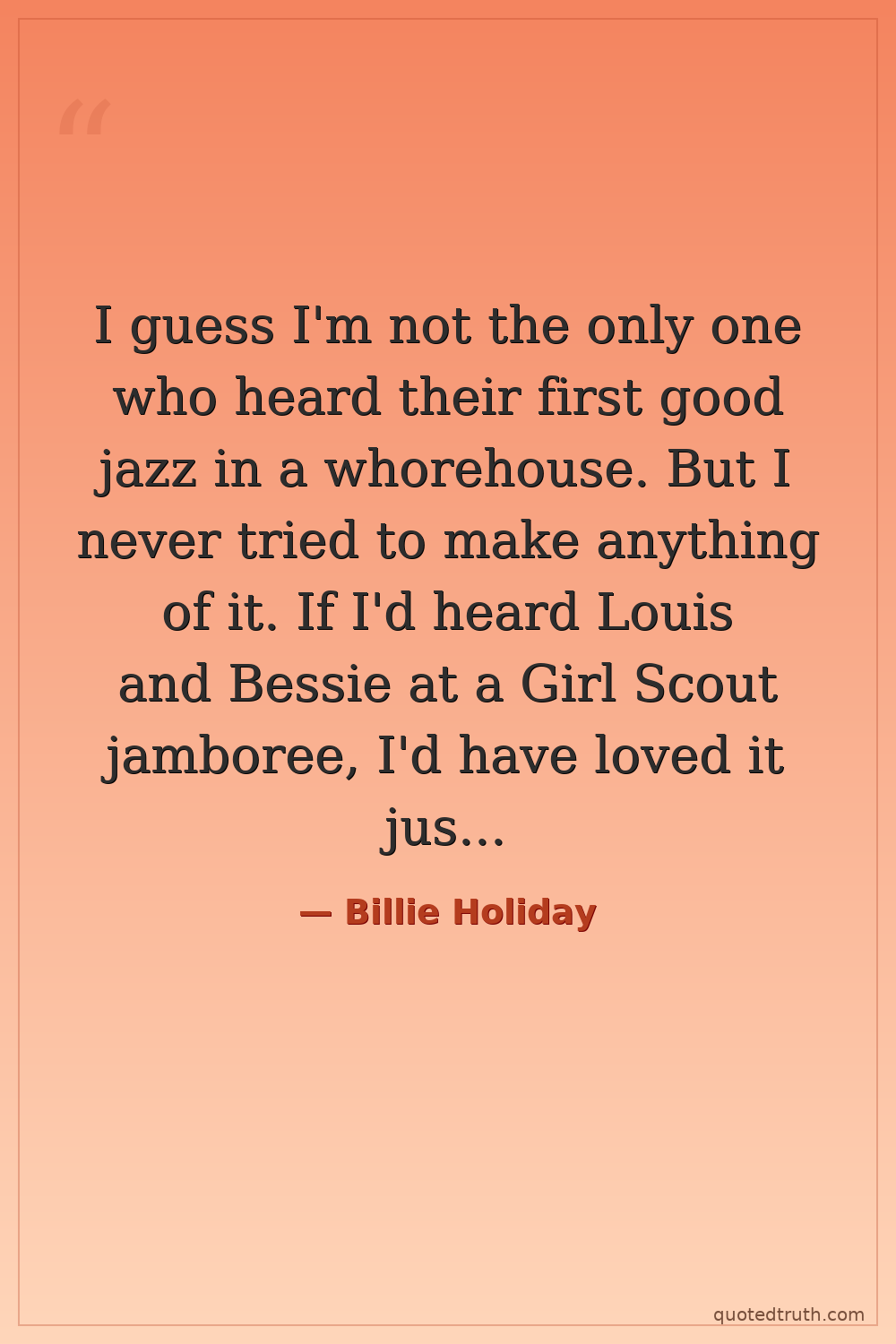 I guess I'm not the only one who heard their first good jazz in a whorehouse. But I never tried to make anything of it. If I'd heard Louis and Bessie at a Girl Scout jamboree, I'd have loved it just the same.
