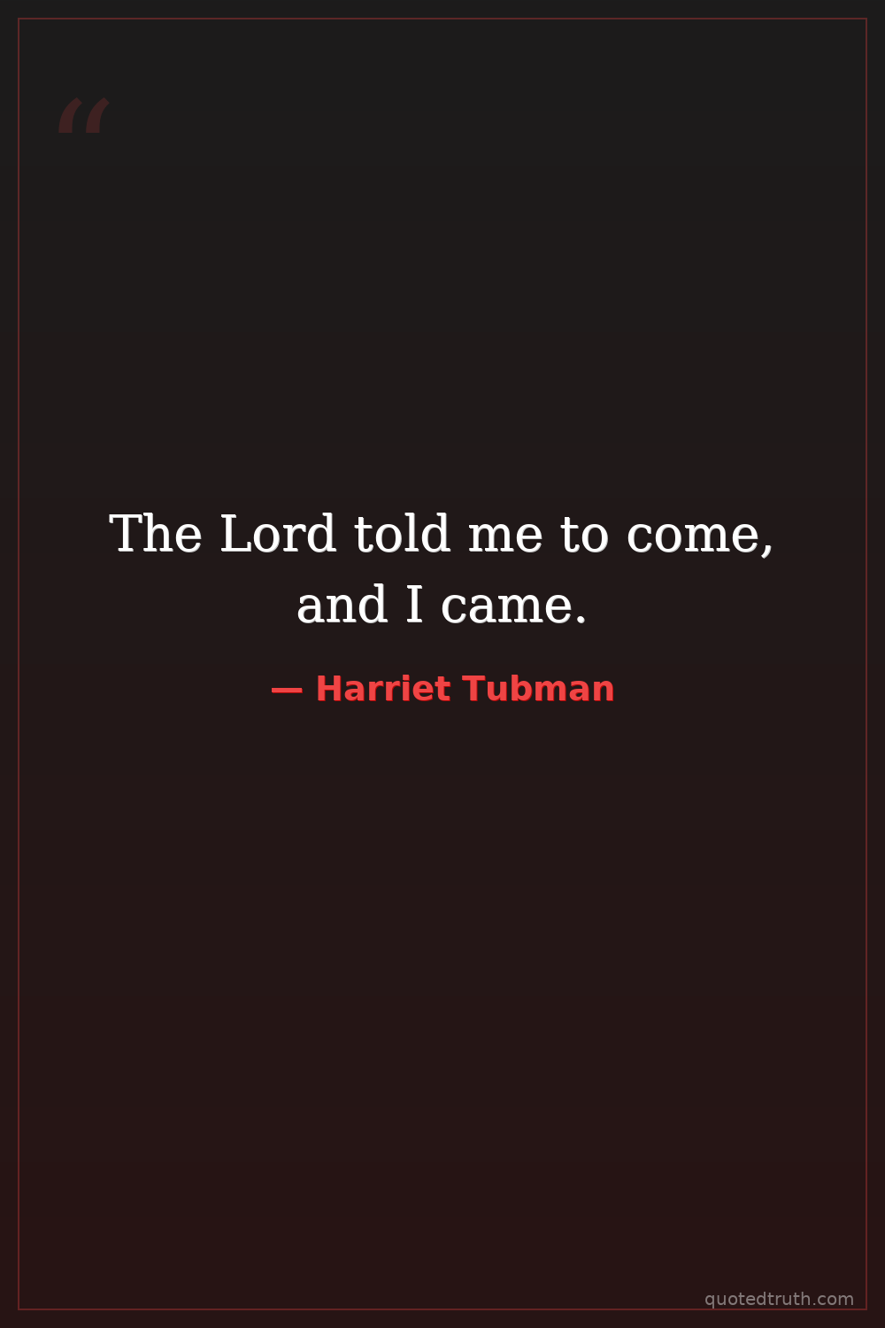 Controversial"I prayed for my master and mistress until one day I heard a voice saying, 'Harriet, you must go.'"