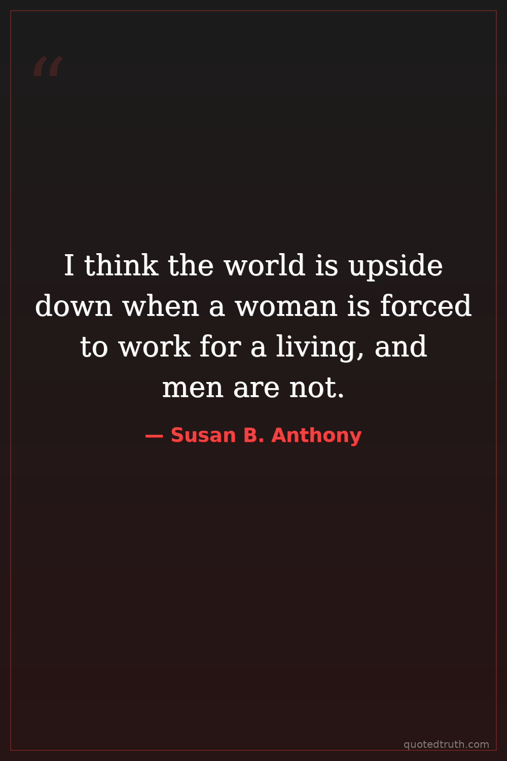 I think the world is upside down when a woman is forced to work for a living, and men are not.