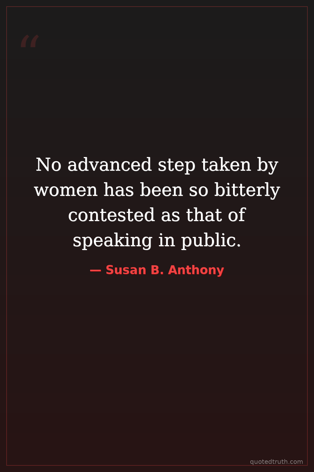 No advanced step taken by women has been so bitterly contested as that of speaking in public.