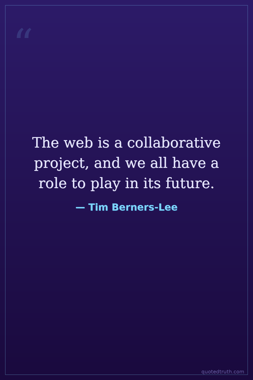 Shocking"The Web is more a social creation than a technical one. I designed it for a social effect — to help people work together — and not as a technological toy. The ultimate goal of the Web is to support an…"