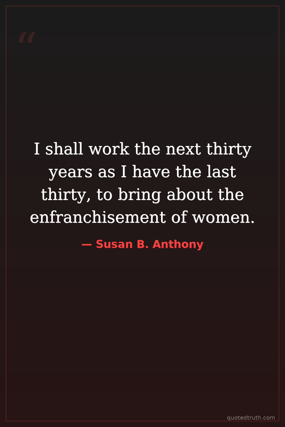 I shall work the next thirty years as I have the last thirty, to bring about the enfranchisement of women.