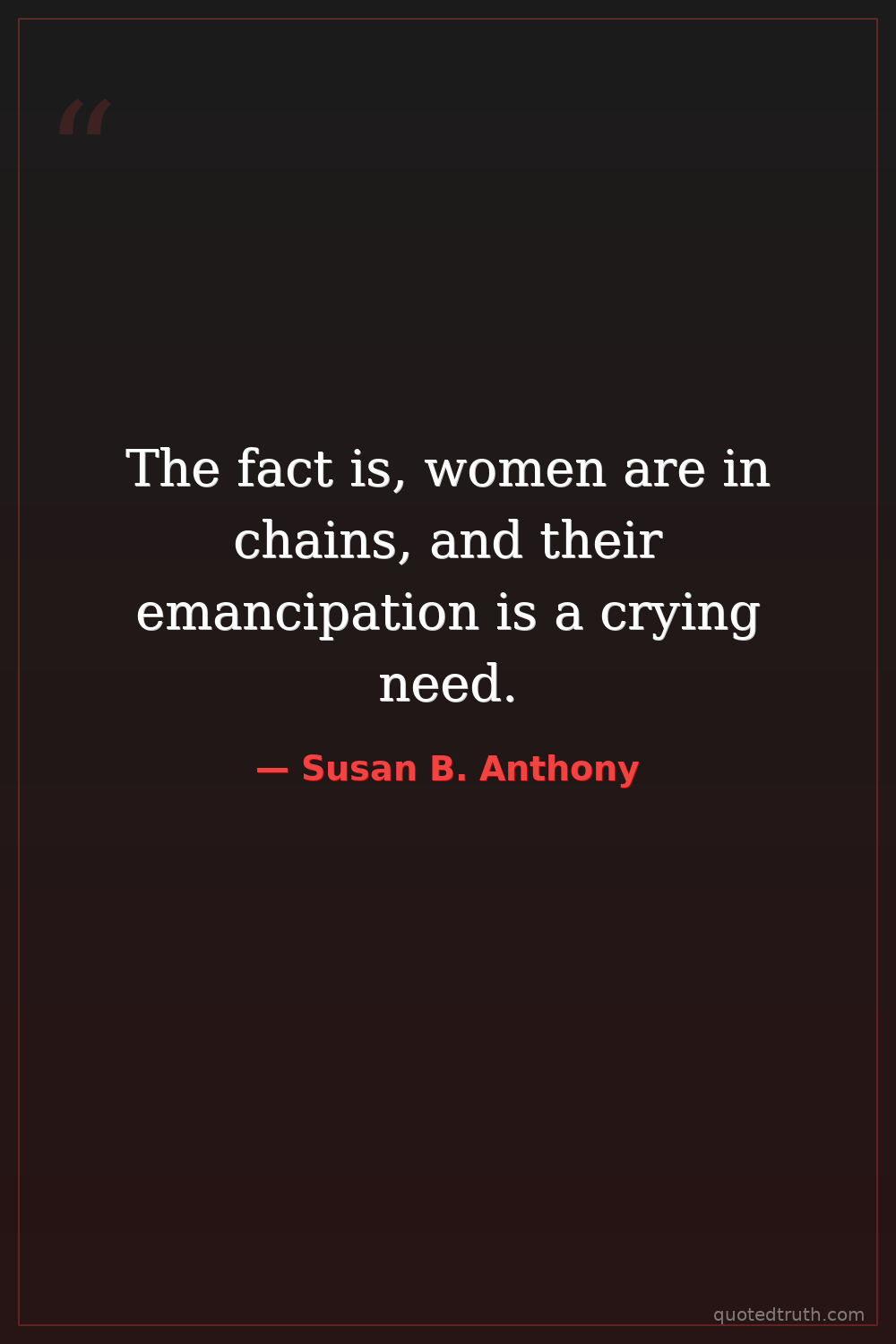 Controversial"Woman's cause is man's cause; we rise or fall together, dwarfed or godlike, bond or free."