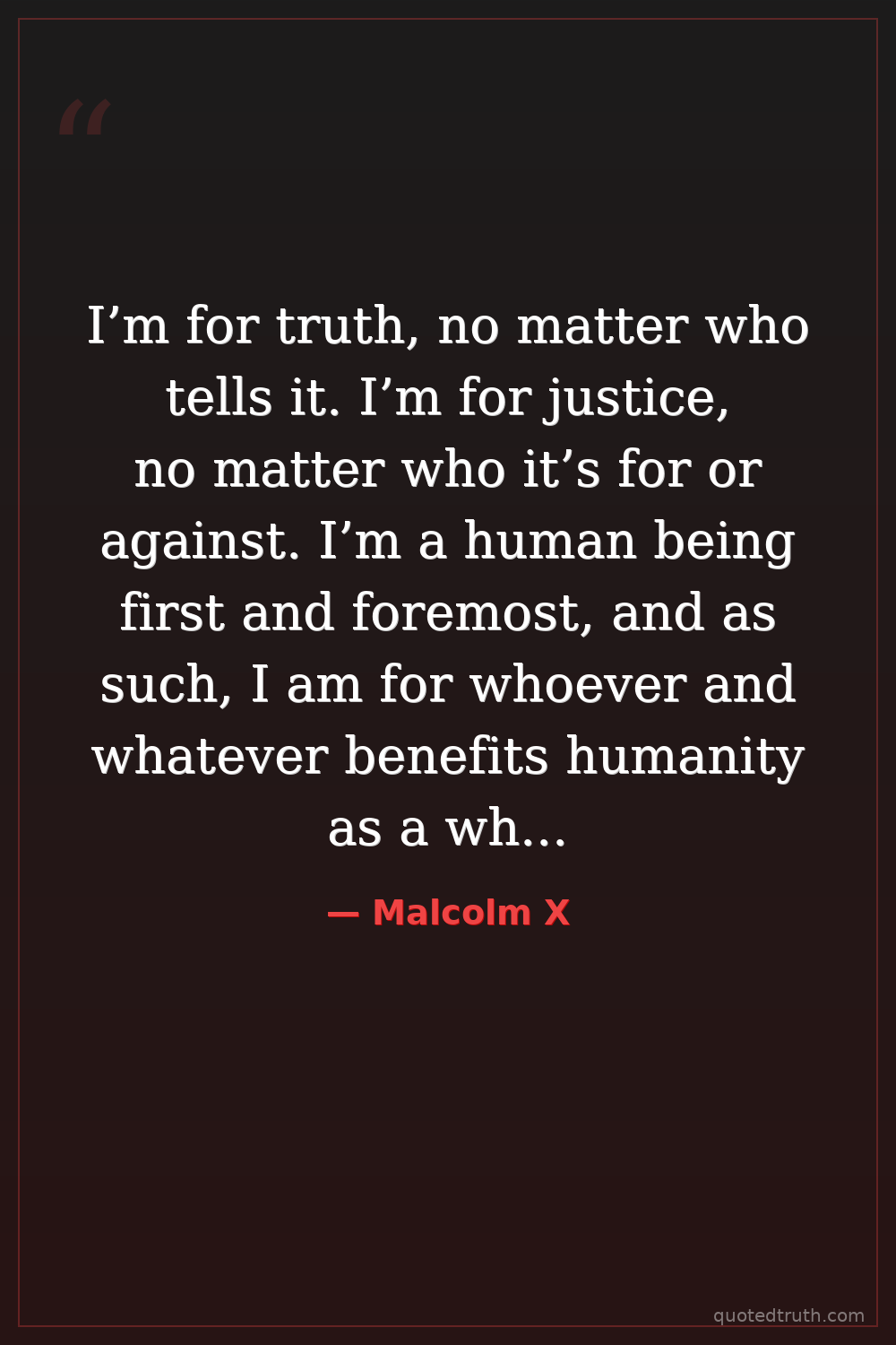 I’m for truth, no matter who tells it. I’m for justice, no matter who it’s for or against. I’m a human being first and foremost, and as such, I am for whoever and whatever benefits humanity as a whole.