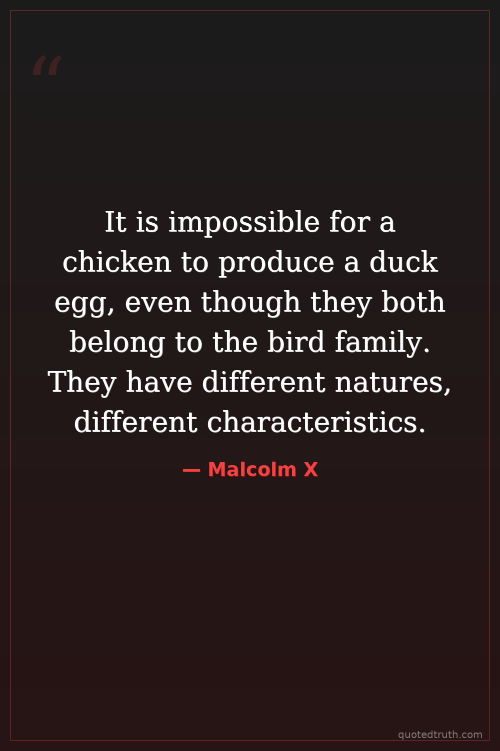 It is impossible for a chicken to produce a duck egg, even though they both belong to the bird family. They have different natures, different characteristics.