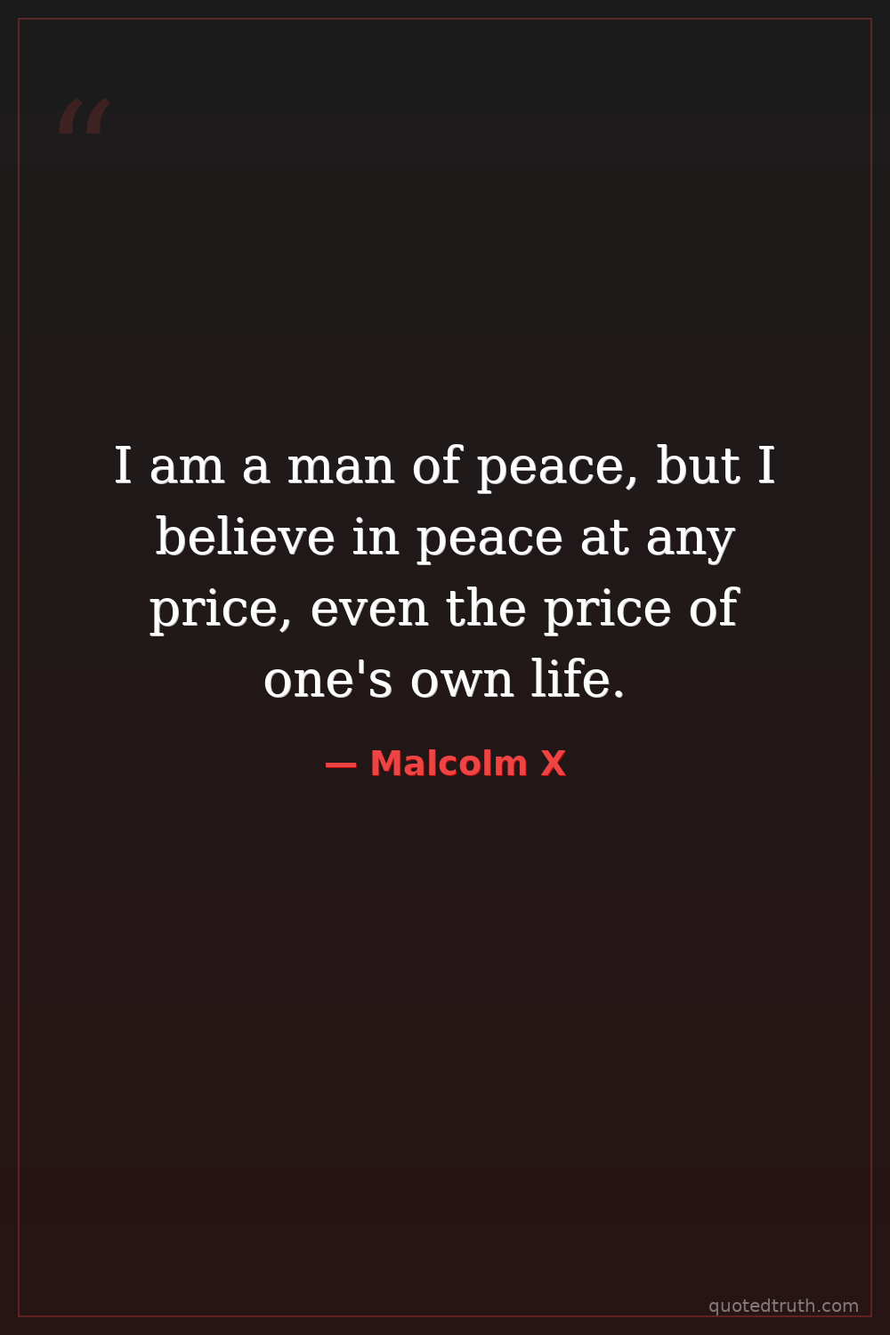 I am a man of peace, but I believe in peace at any price, even the price of one's own life.