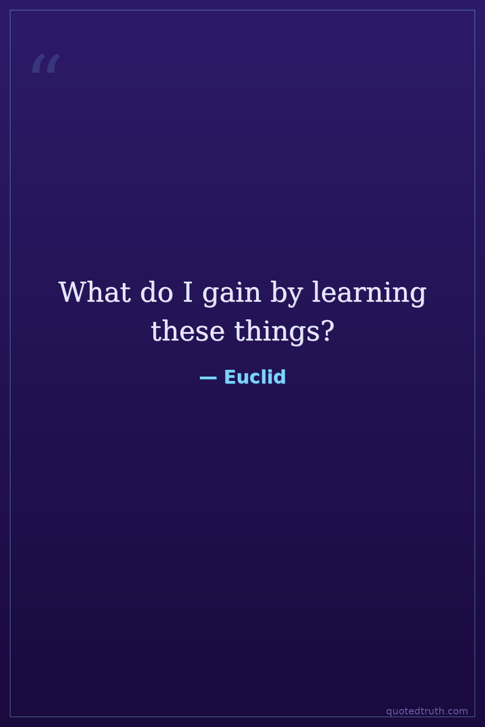 Reported response to a student who, after learning the first theorem, asked what he would get by learning such things. Euclid then called his slave and said, 'Give him three pence, since he must make gain out of what he learns.'