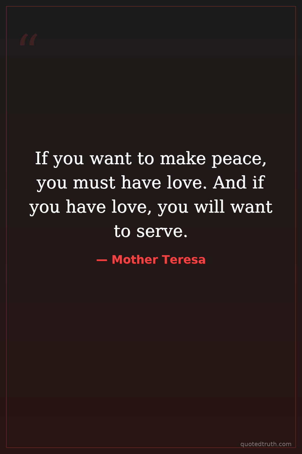 If you want to make peace, you must have love. And if you have love, you will want to serve.