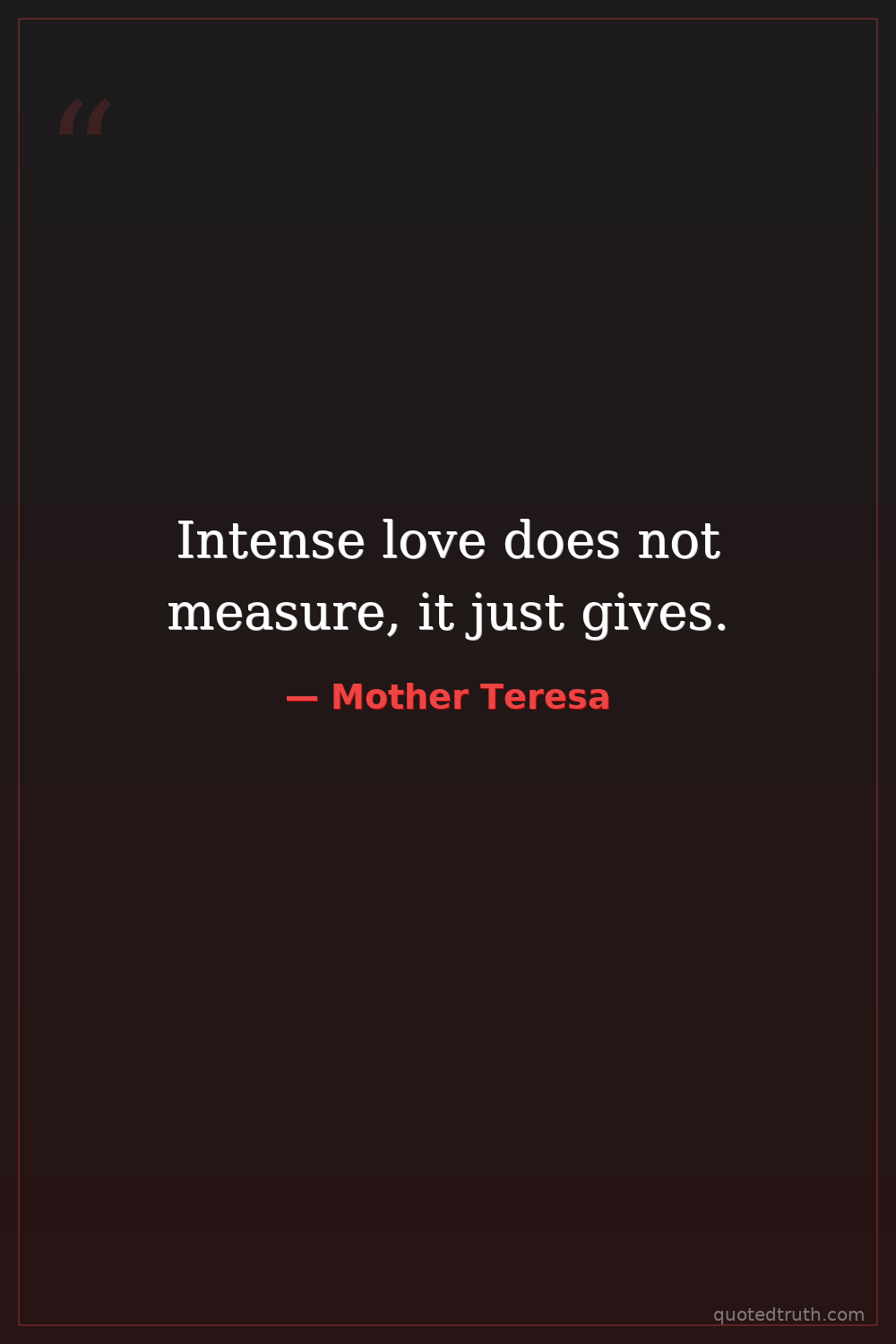 Intense love does not measure, it just gives.