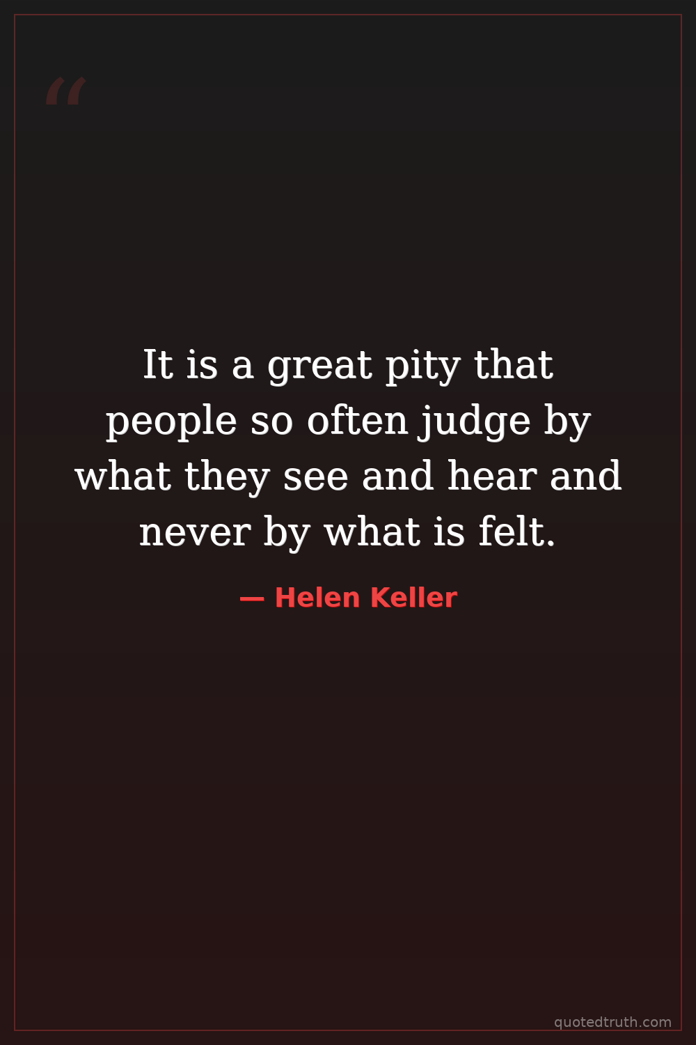 It is a great pity that people so often judge by what they see and hear and never by what is felt.