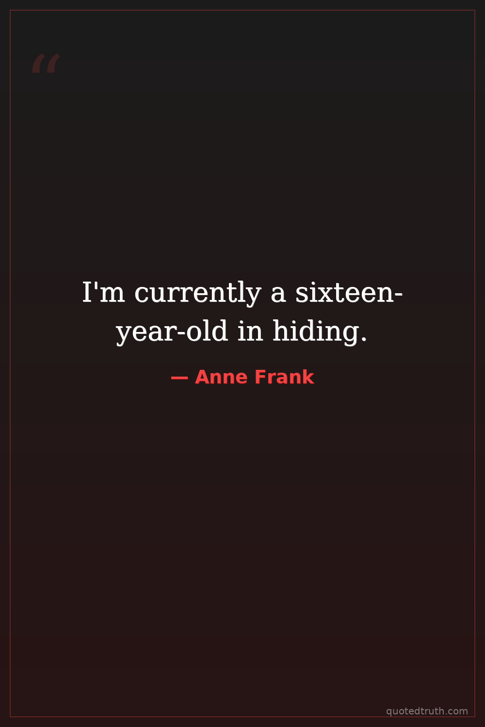 From 'The Diary of a Young Girl' (she was 13-15 during the diary entries). This is an illustrative quote, but the age is slightly off for the diary's content.