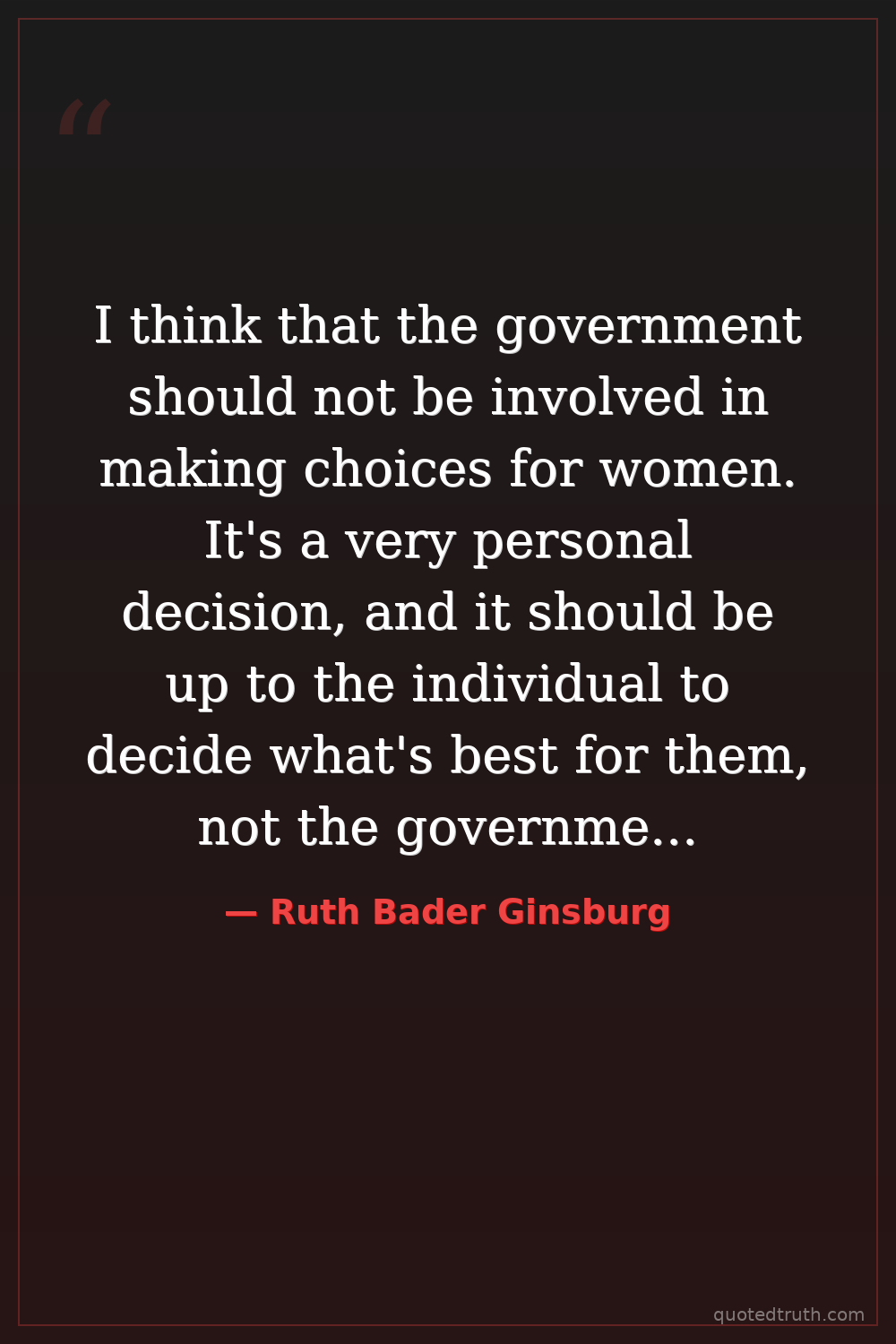 I think that the government should not be involved in making choices for women. It's a very personal decision, and it should be up to the individual to decide what's best for them, not the government. That's a fundamental right, and it's something that I feel very strongly about. And I think that it's important for us to protect that right, and to make sure that women have the freedom to make their own choices, and to live their lives as they see fit, without interference from the government.