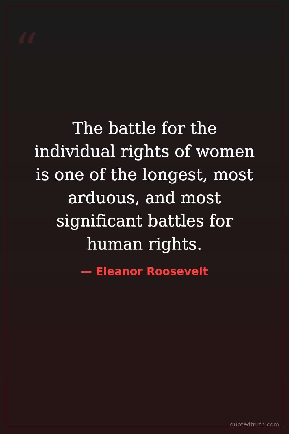 The battle for the individual rights of women is one of the longest, most arduous, and most significant battles for human rights.