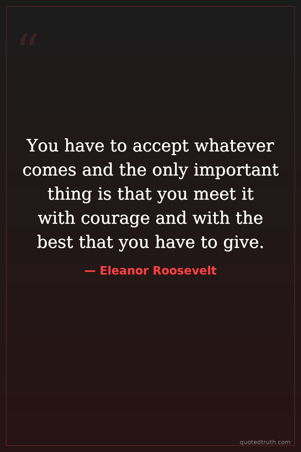You have to accept whatever comes and the only important thing is that you meet it with courage and with the best that you have to give.
