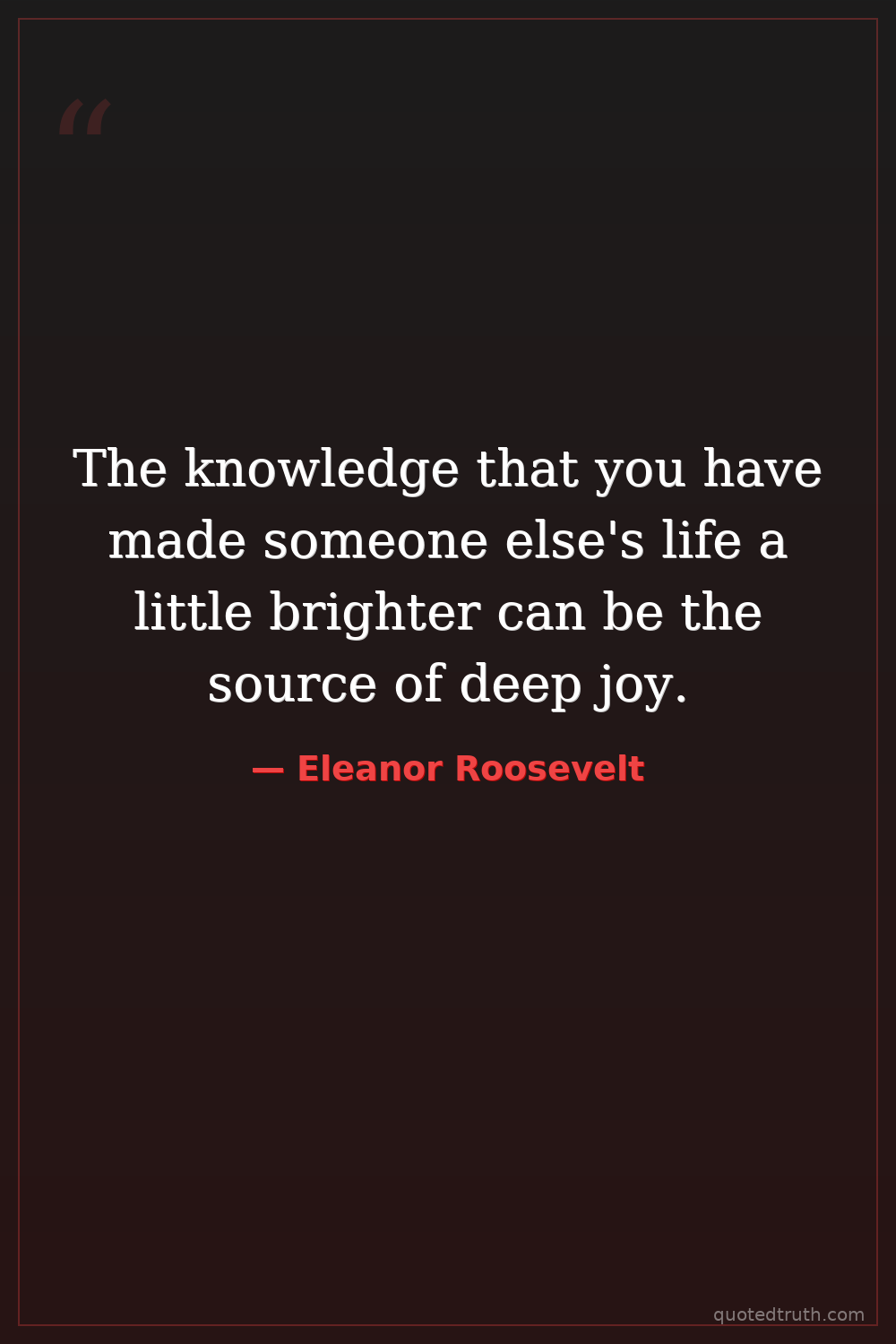 The knowledge that you have made someone else's life a little brighter can be the source of deep joy.