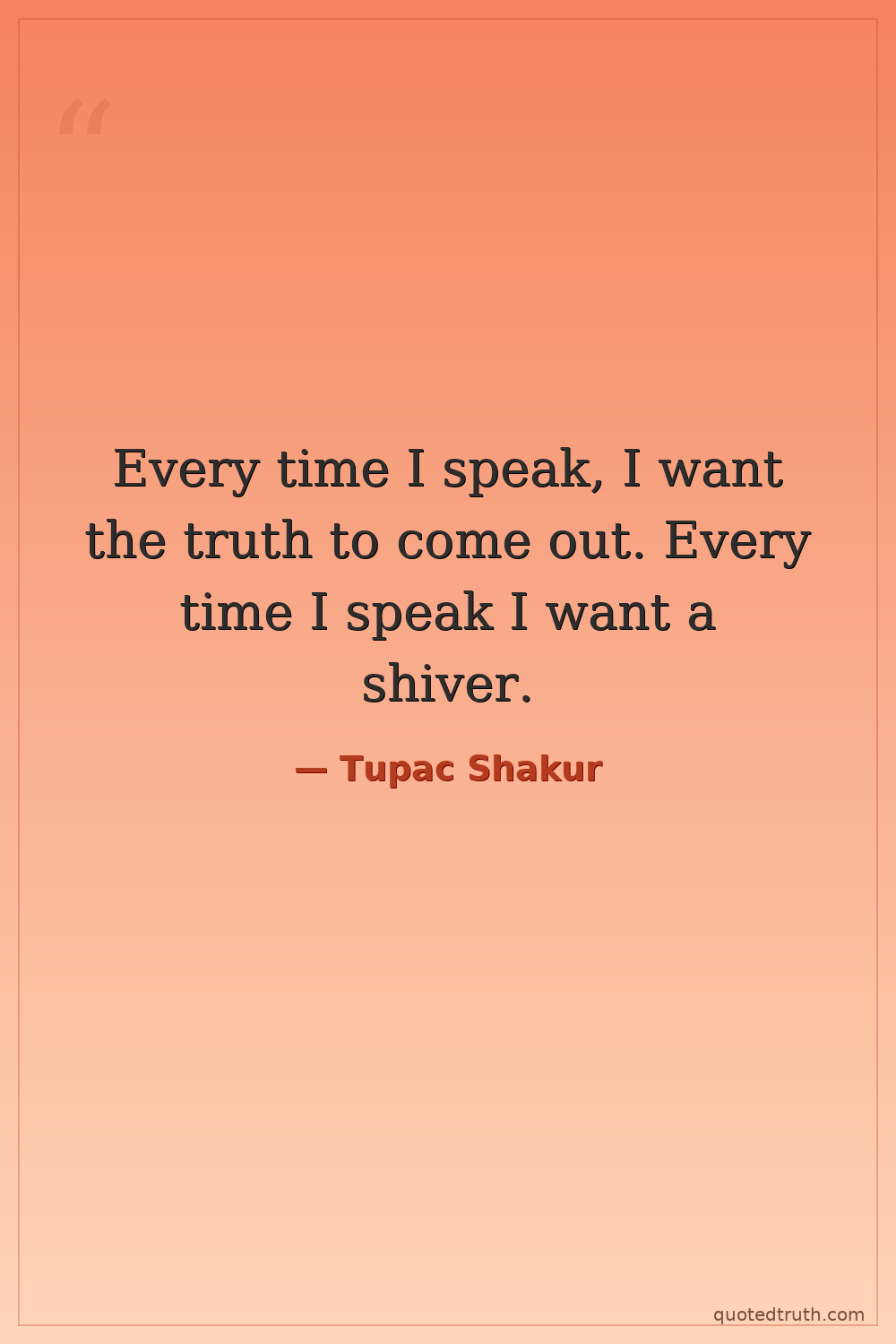 Every time I speak, I want the truth to come out. Every time I speak I want a shiver.