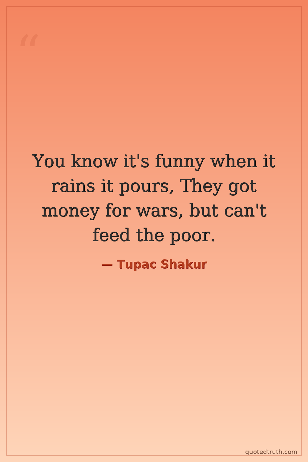 You know it's funny when it rains it pours, They got money for wars, but can't feed the poor.