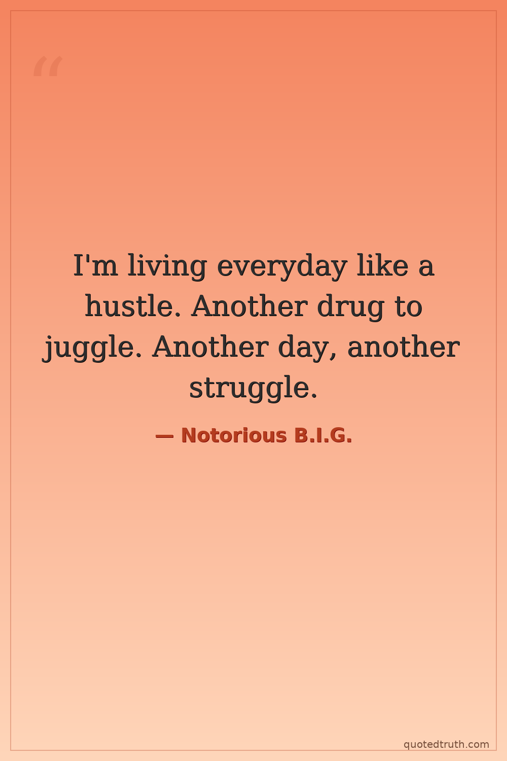 I'm living everyday like a hustle. Another drug to juggle. Another day, another struggle.
