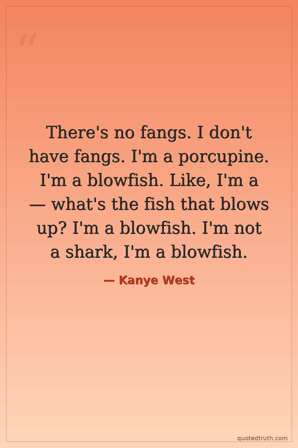 There's no fangs. I don't have fangs. I'm a porcupine. I'm a blowfish. Like, I'm a — what's the fish that blows up? I'm a blowfish. I'm not a shark, I'm a blowfish.