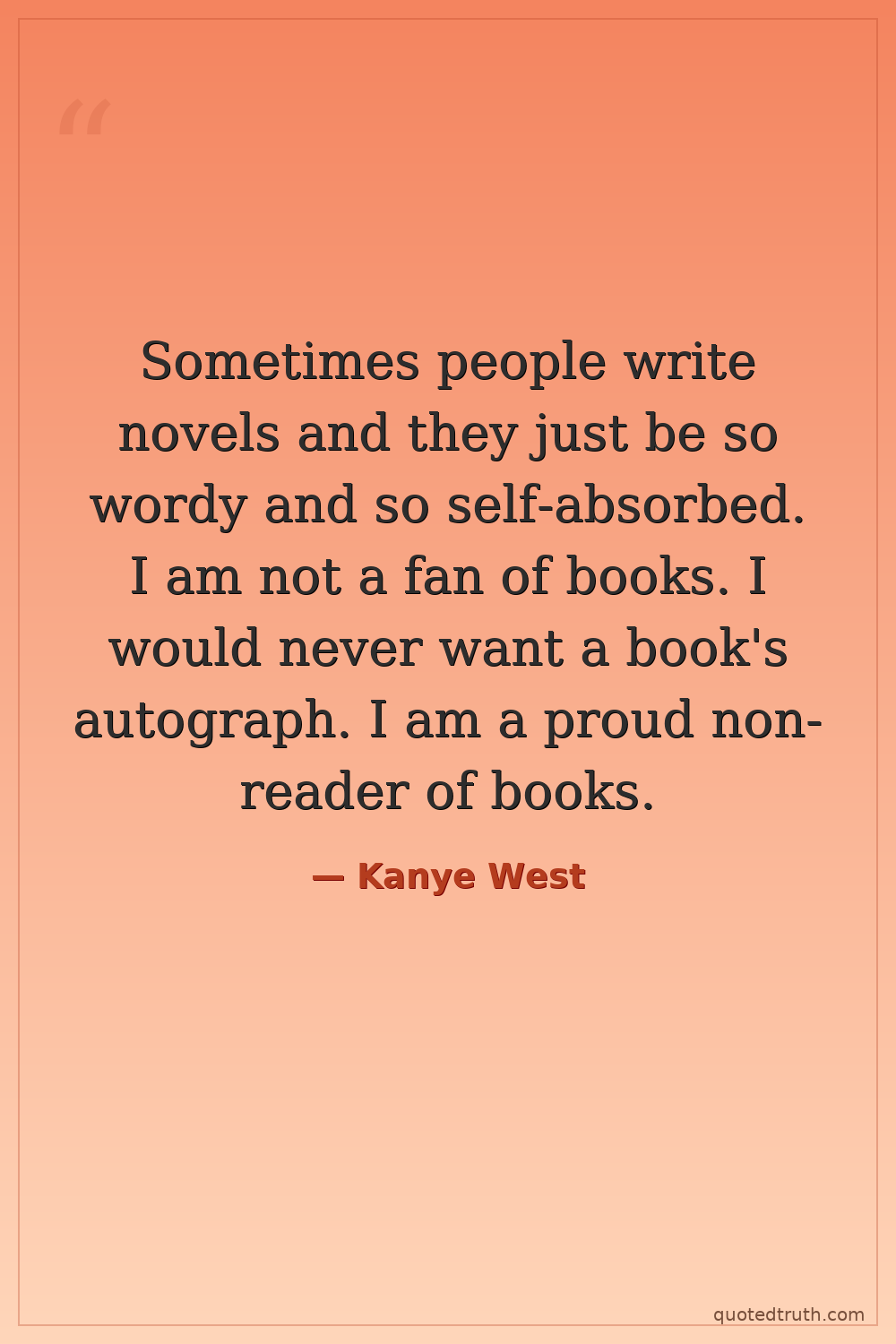 Sometimes people write novels and they just be so wordy and so self-absorbed. I am not a fan of books. I would never want a book's autograph. I am a proud non-reader of books.