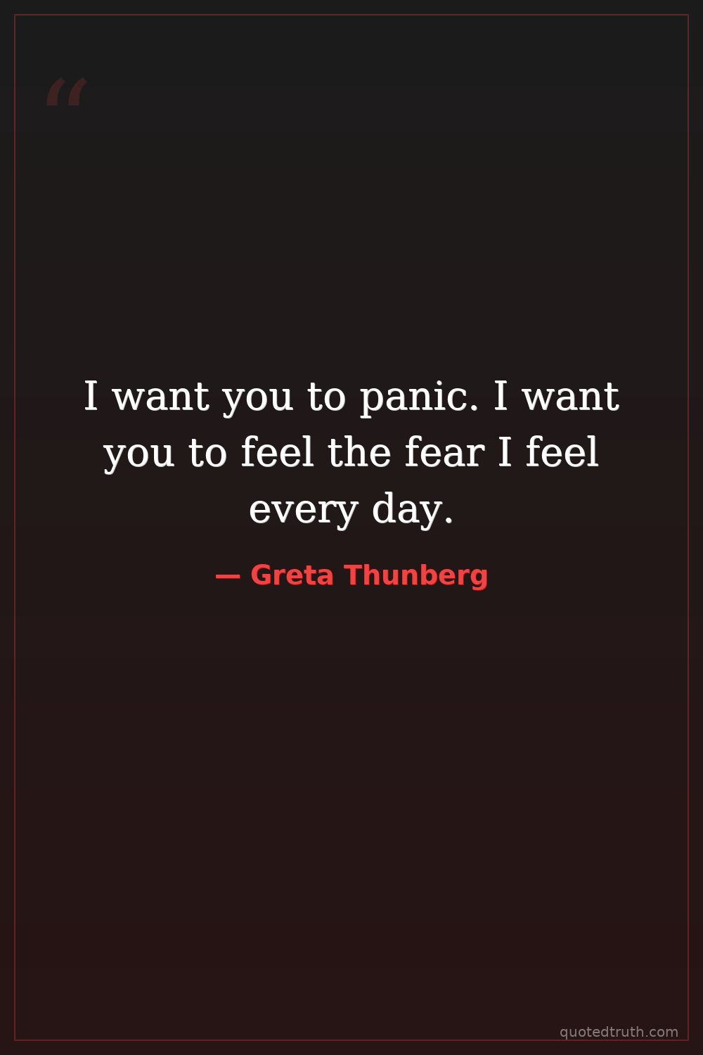 I want you to panic. I want you to feel the fear I feel every day.