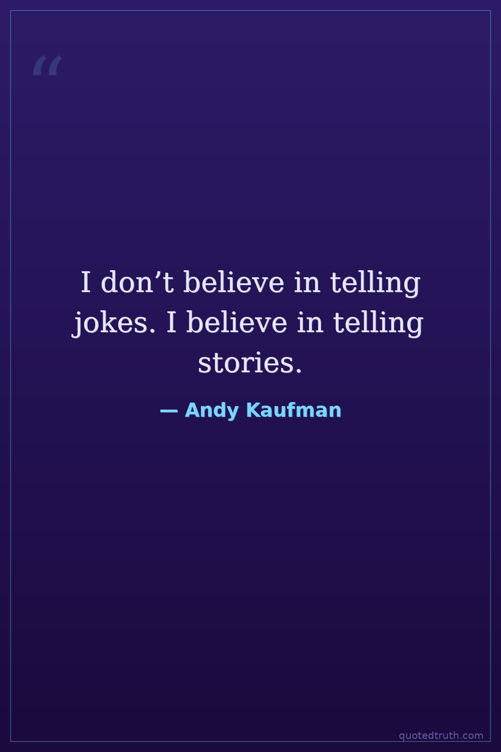 I don’t believe in telling jokes. I believe in telling stories.