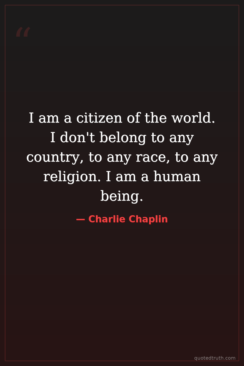 I am a citizen of the world. I don't belong to any country, to any race, to any religion. I am a human being.