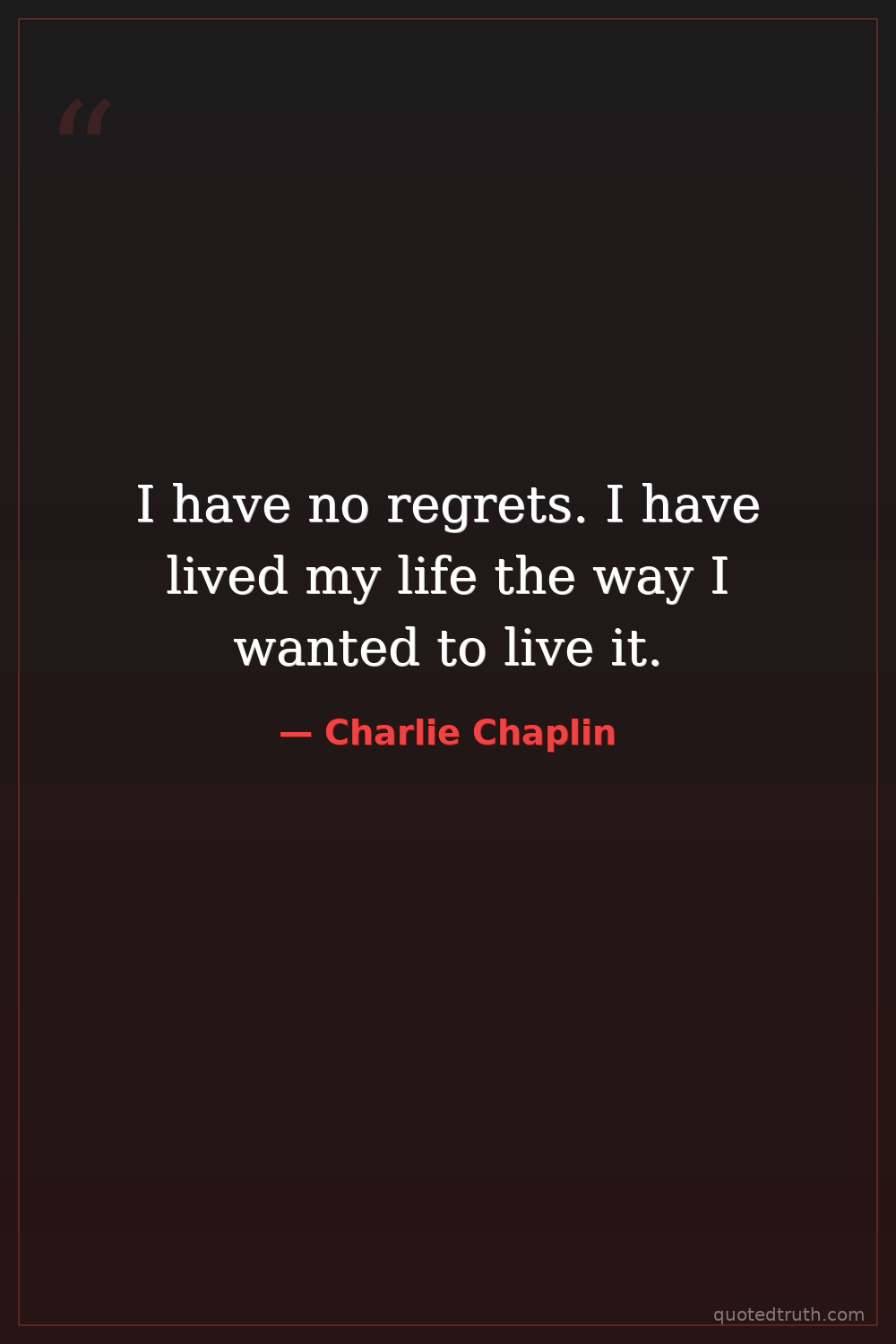 I have no regrets. I have lived my life the way I wanted to live it.