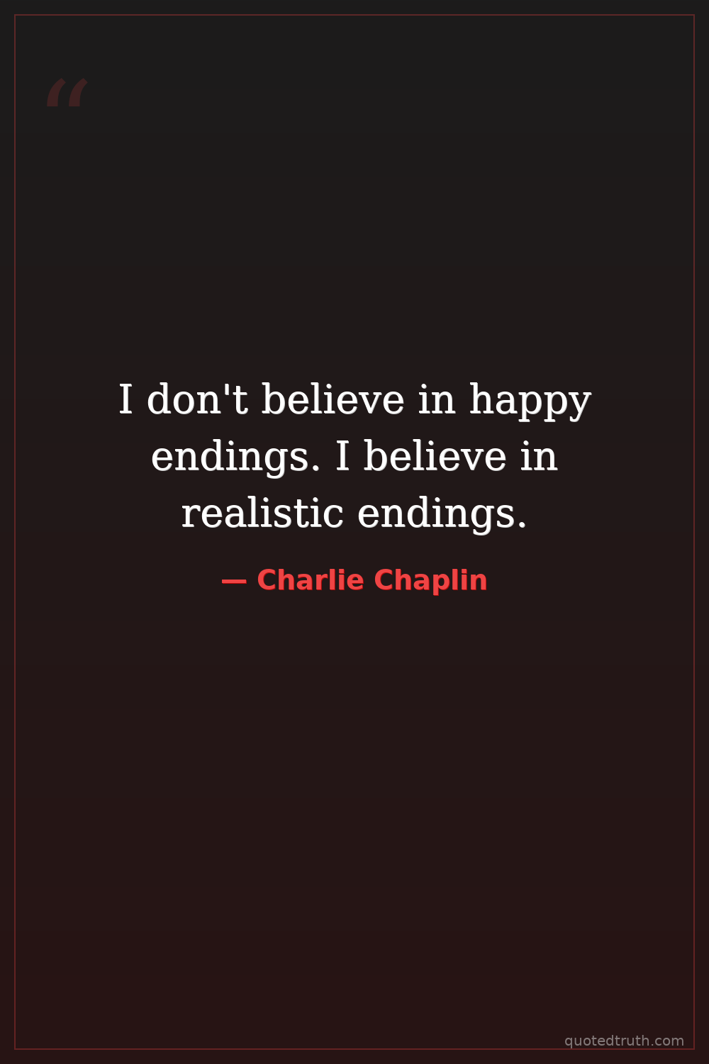 I don't believe in happy endings. I believe in realistic endings.