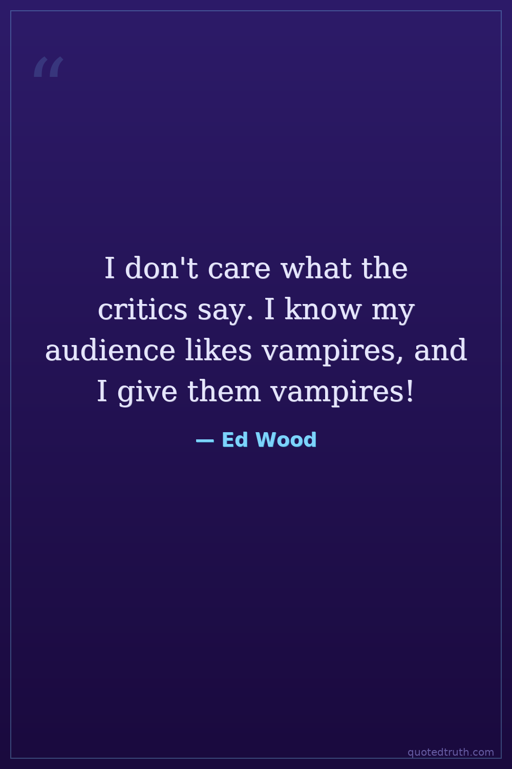 I don't care what the critics say. I know my audience likes vampires, and I give them vampires!