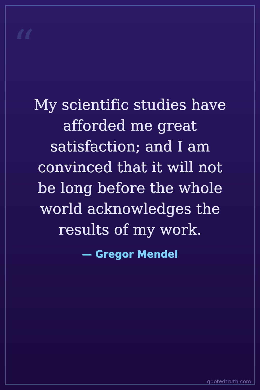 My scientific studies have afforded me great satisfaction; and I am convinced that it will not be long before the whole world acknowledges the results of my work.
