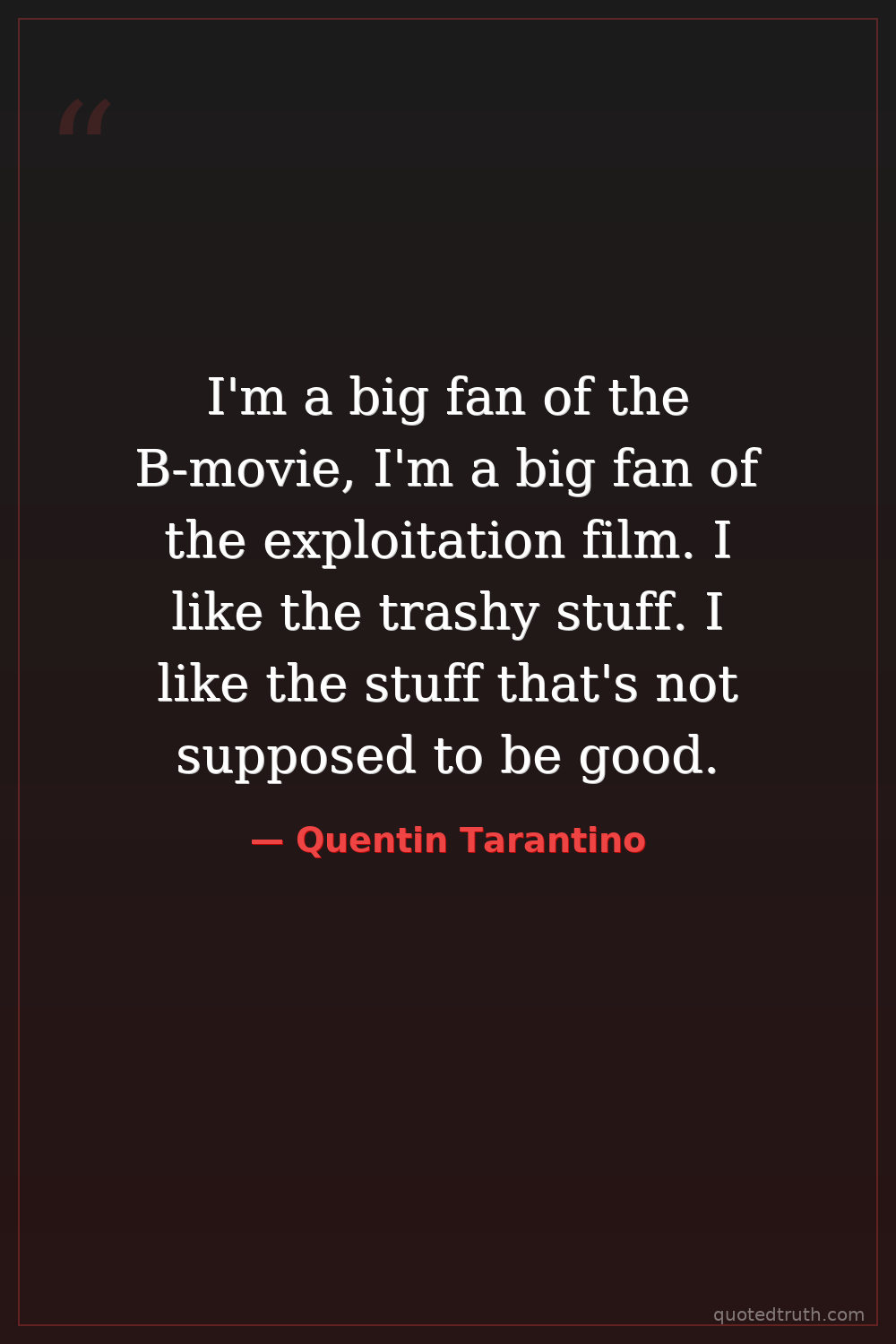 I'm a big fan of the B-movie, I'm a big fan of the exploitation film. I like the trashy stuff. I like the stuff that's not supposed to be good.